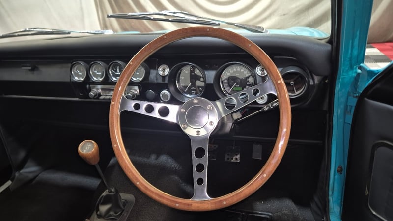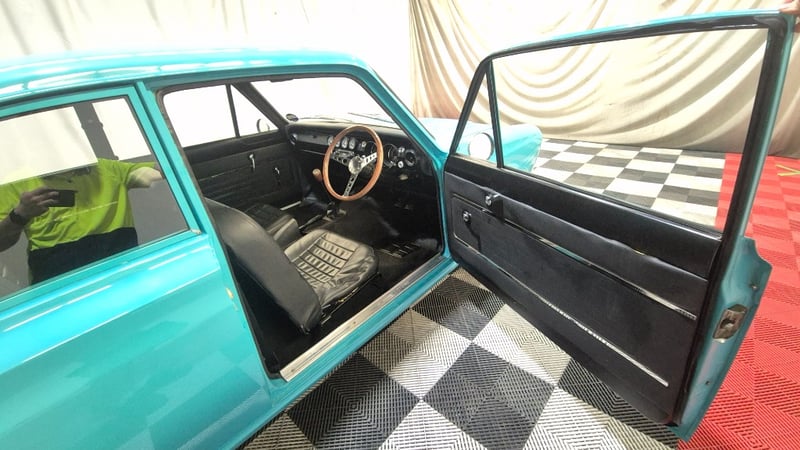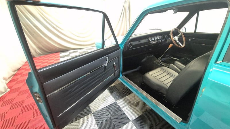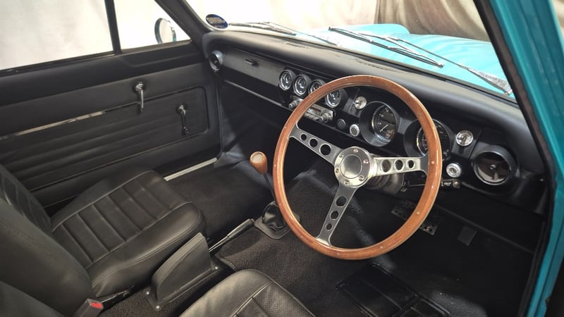 Powered by a 2.0-litre 16-valve twin-cam DOHC engine with individual throttle bodies, producing approximately 125 horsepower, this Cortina delivers a significant uplift over the original 1500 GT while remaining true to the car’s lightweight, driver-focused nature. Power is sent to the rear wheels via a 4-speed manual transmission, with the car weighing approximately 815kg following restoration.