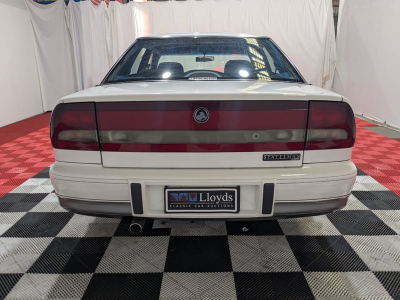 1996 Holden VS Statesman four‑door sedan finished in White. Rear‑wheel drive configuration powered by a 3.8‑litre V6 petrol engine paired with an automatic transmission. Odometer indicating 90,583 kilometres. Seating for five occupants.