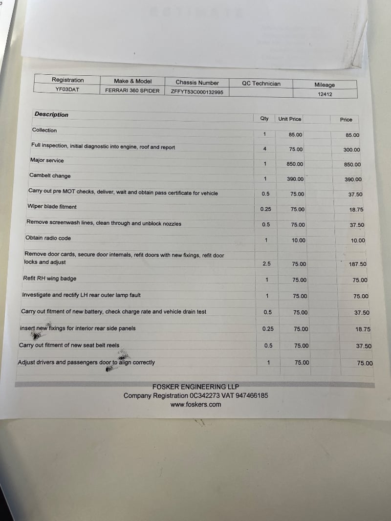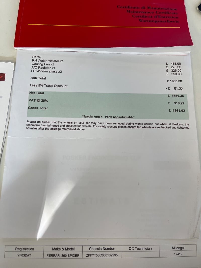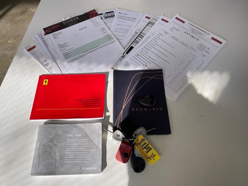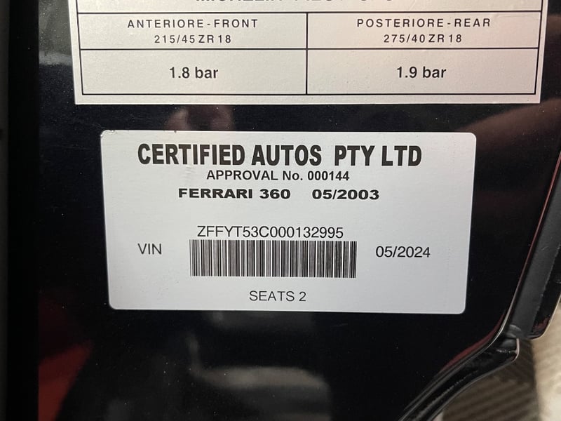 The vendor advises the vehicle has been owned for the past two years and has received servicing from a Ferrari specialist in Sydney, including cam belt replacement. The vehicle is supplied with two keys, two remote fobs and a trickle charger. It is also fitted with Ferrari 430 style rims and an aftermarket exhaust system.