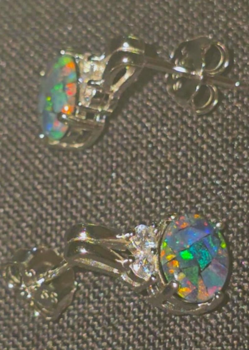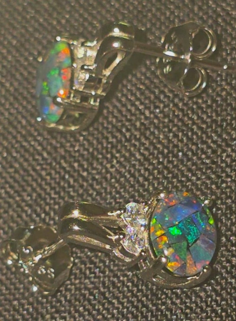 10.9 TCW PAIR OF COOBER PEDY AND STERLING SILVER MOSAIC TRIPLET STUD EARRINGS
