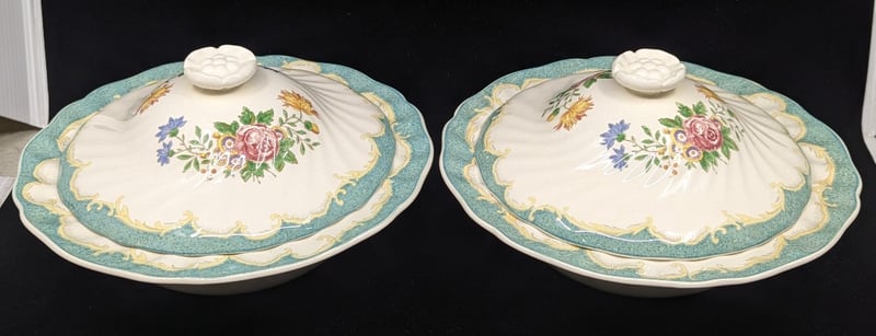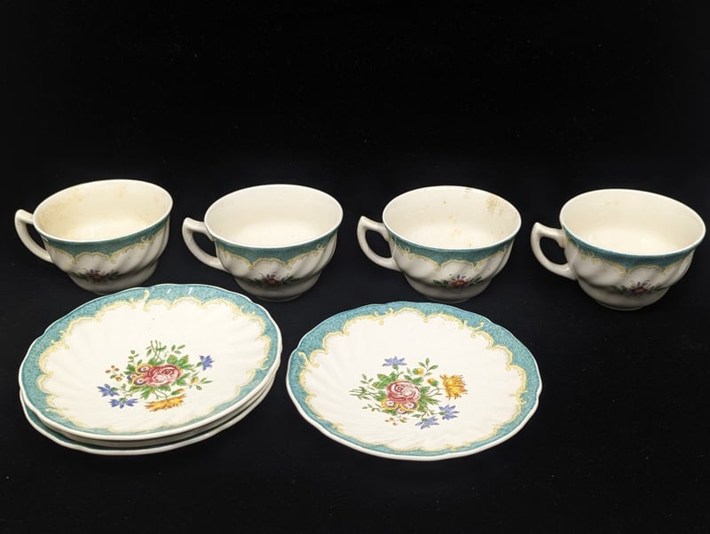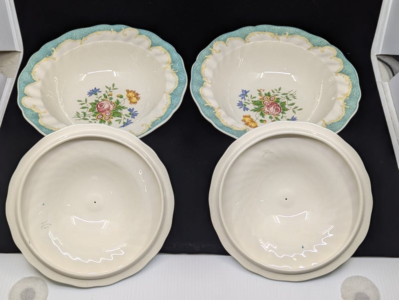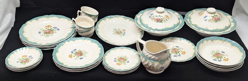 Includes: Two Serving Bowls With Lids, One Jug And Plate, One Serving Plate, Four Tea Cups, Four Saucers, Four Base Plates, Four Side Plates, Four Dinner Plates,