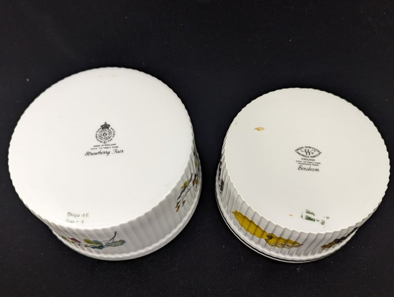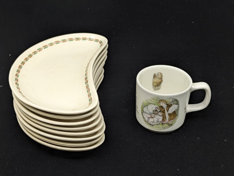 COLLECTION OF TABLEWARE ITEMSIncludes Wedgewood Vase, Cake Stand With Butterfly And Dragonfly Imagery, Hammersley Floral Decorated Bowl, Royal Doulton Simplex Dishes, Royal Worcester Porcelain Bowls, Two Crown Staffordshire Bowls With Bird Imagery, Copeland Tea Cup And Saucer, Woods & Son 'Brier' Teacup And Saucer, Royal Worcester Triple Pot Set, Wedgwood 'Of Etruria & Barlaston' Cup, Metal Teapot, Two Red Decorative Gecko8C586342+6