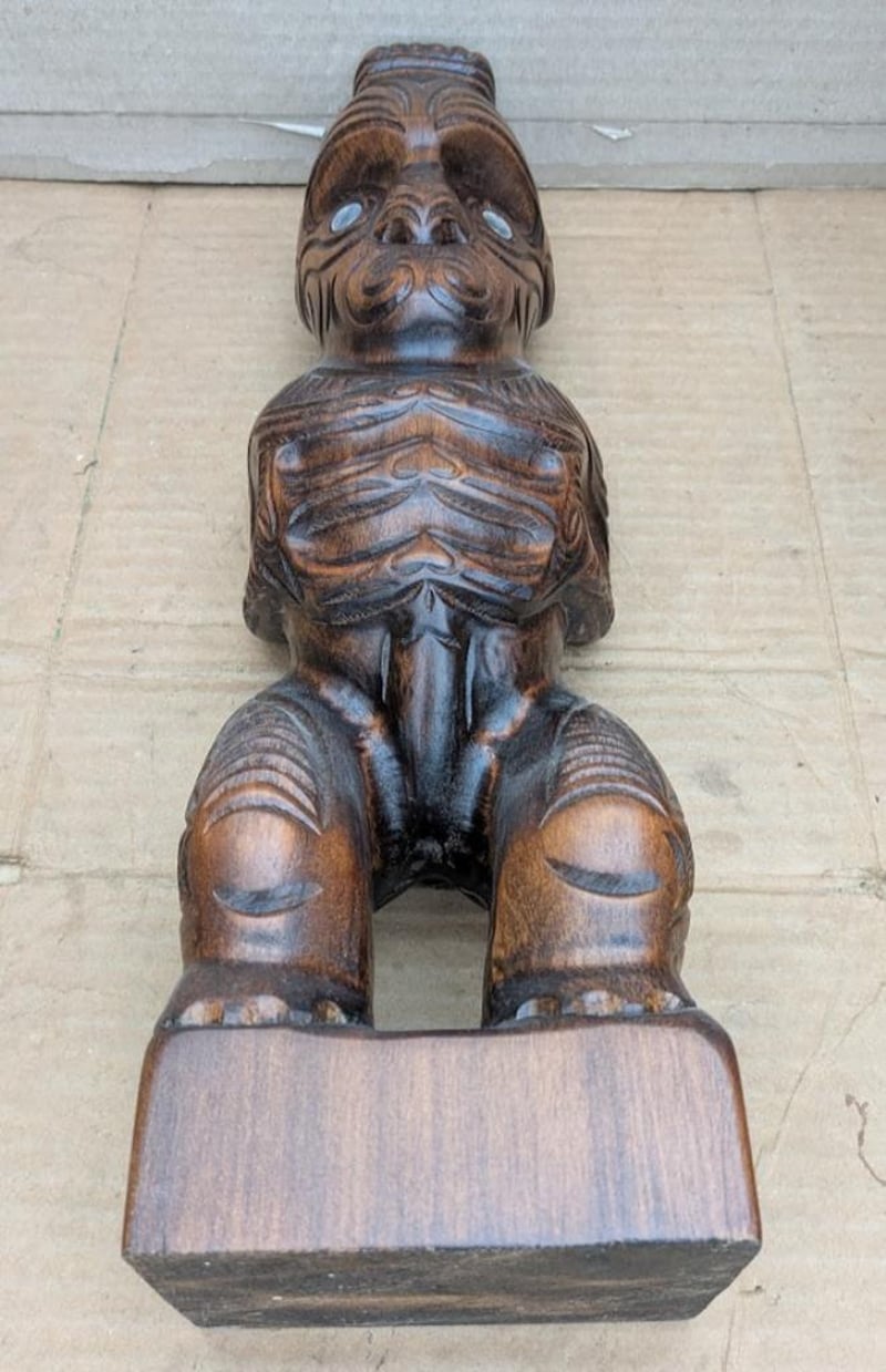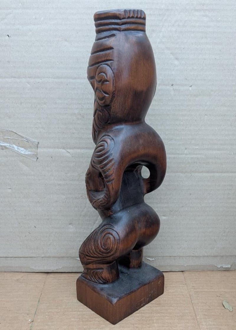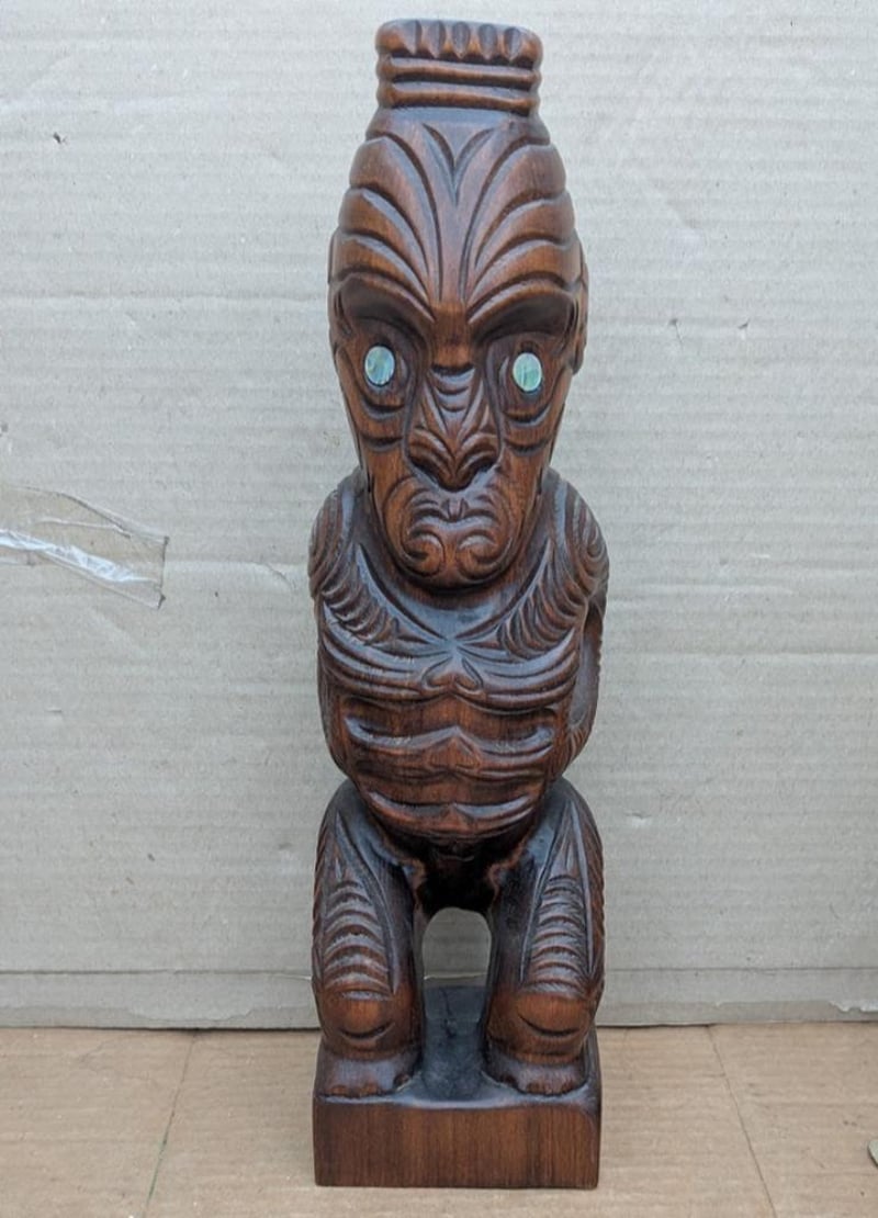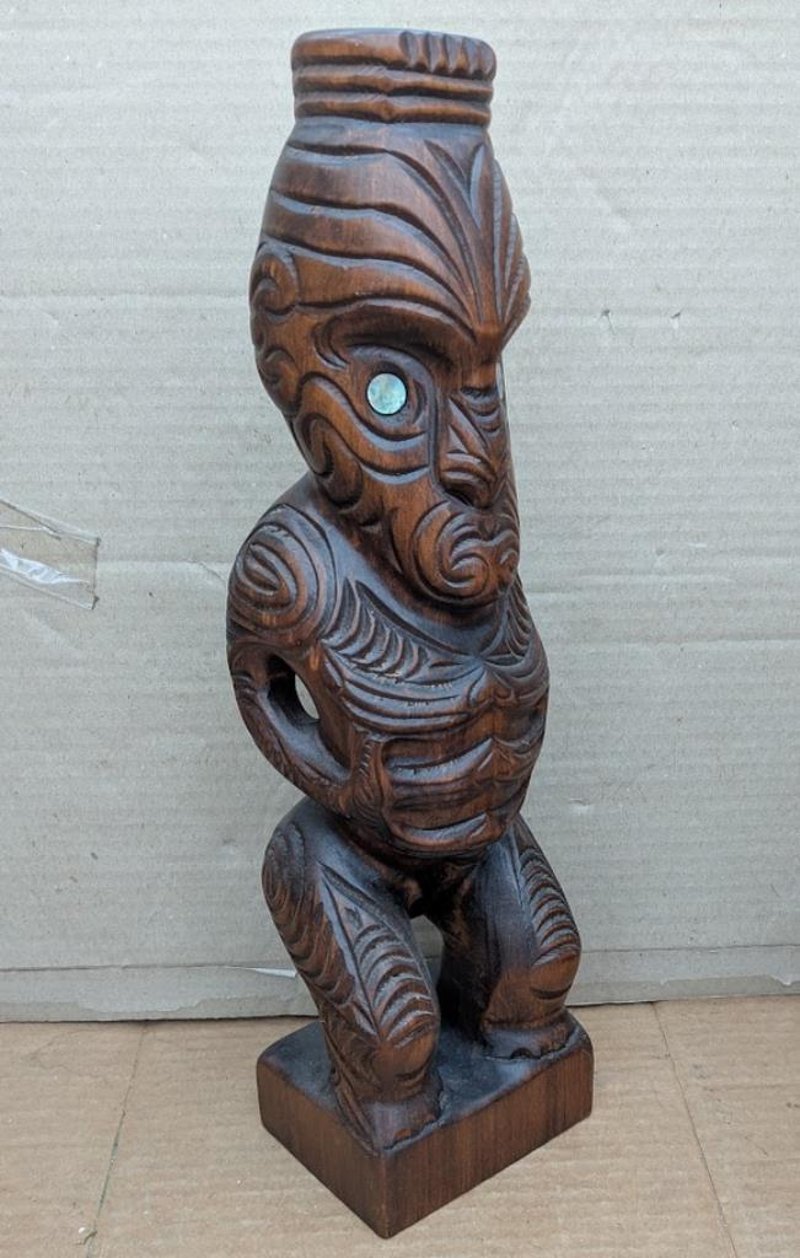 MAORI KAURI TEKO HARDWOOD HAND CARVING WITH PAUA SHELL EYES