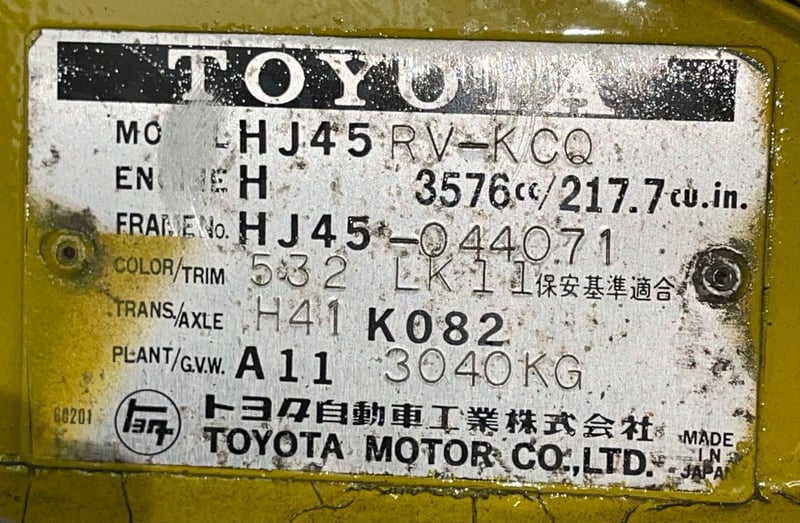 Chassis No: HJ45044071