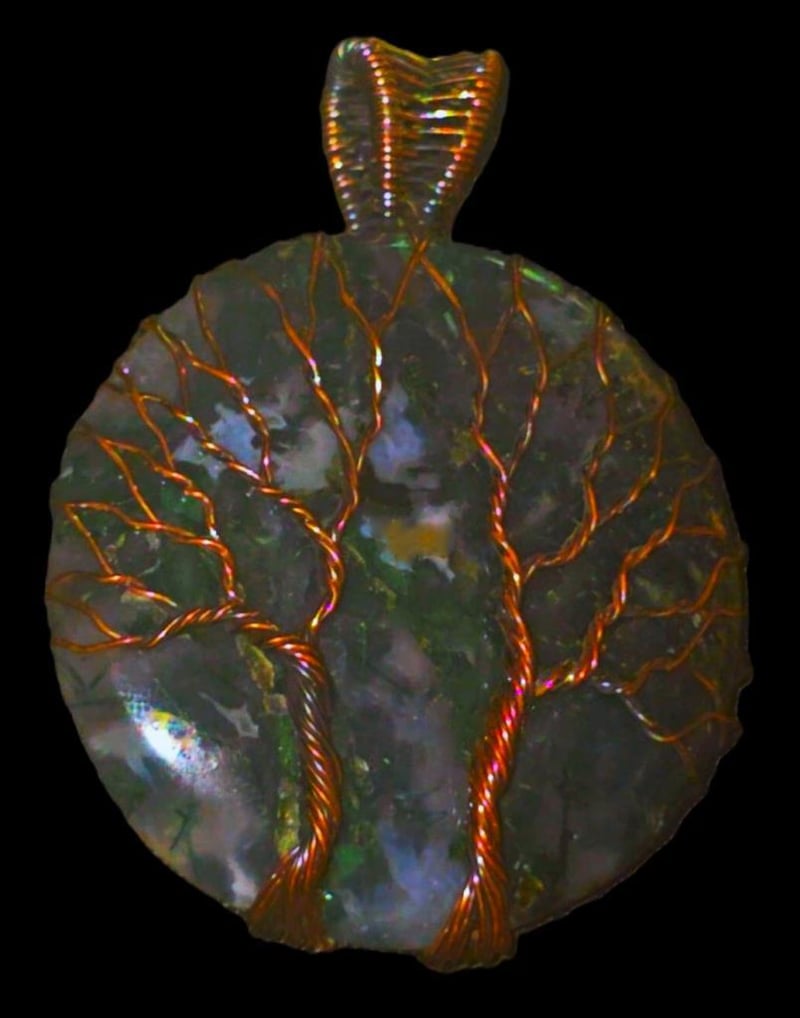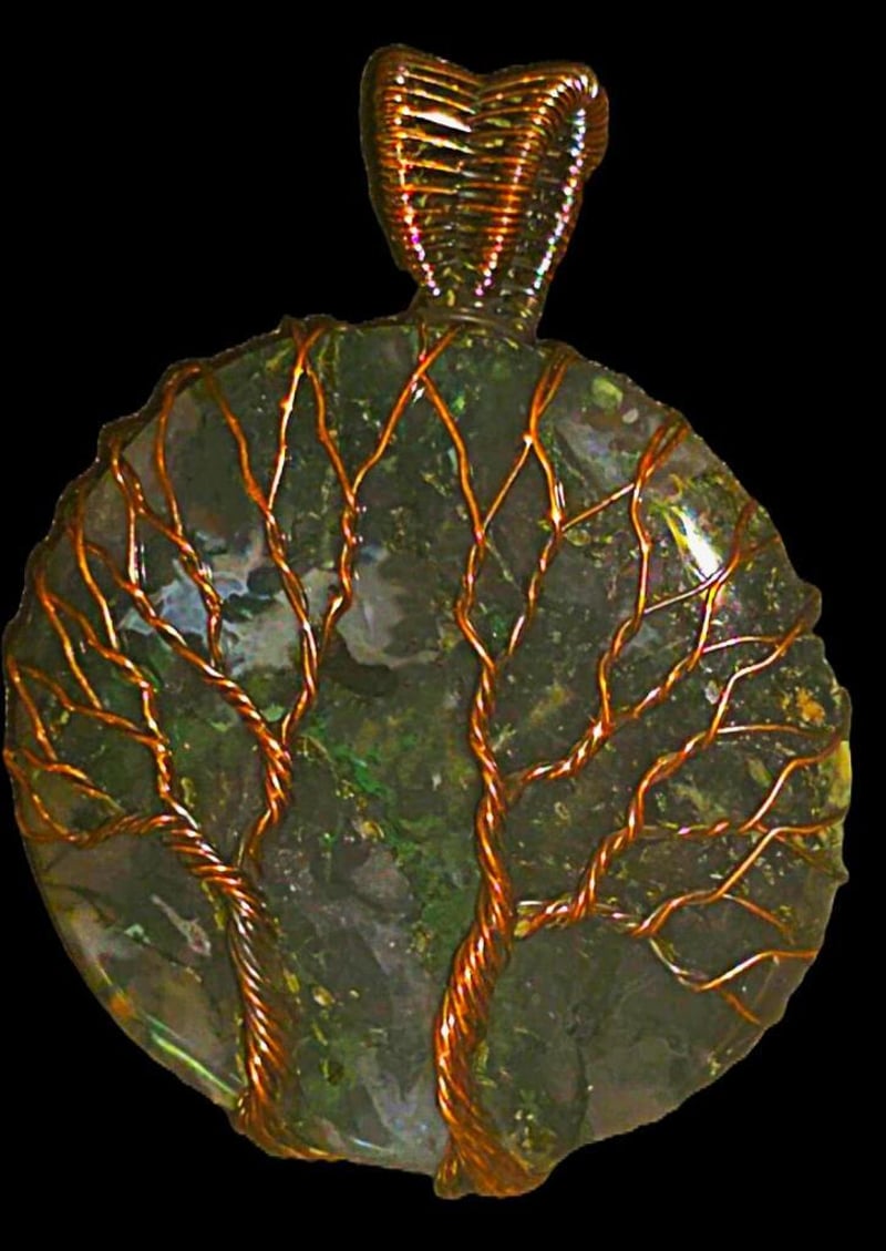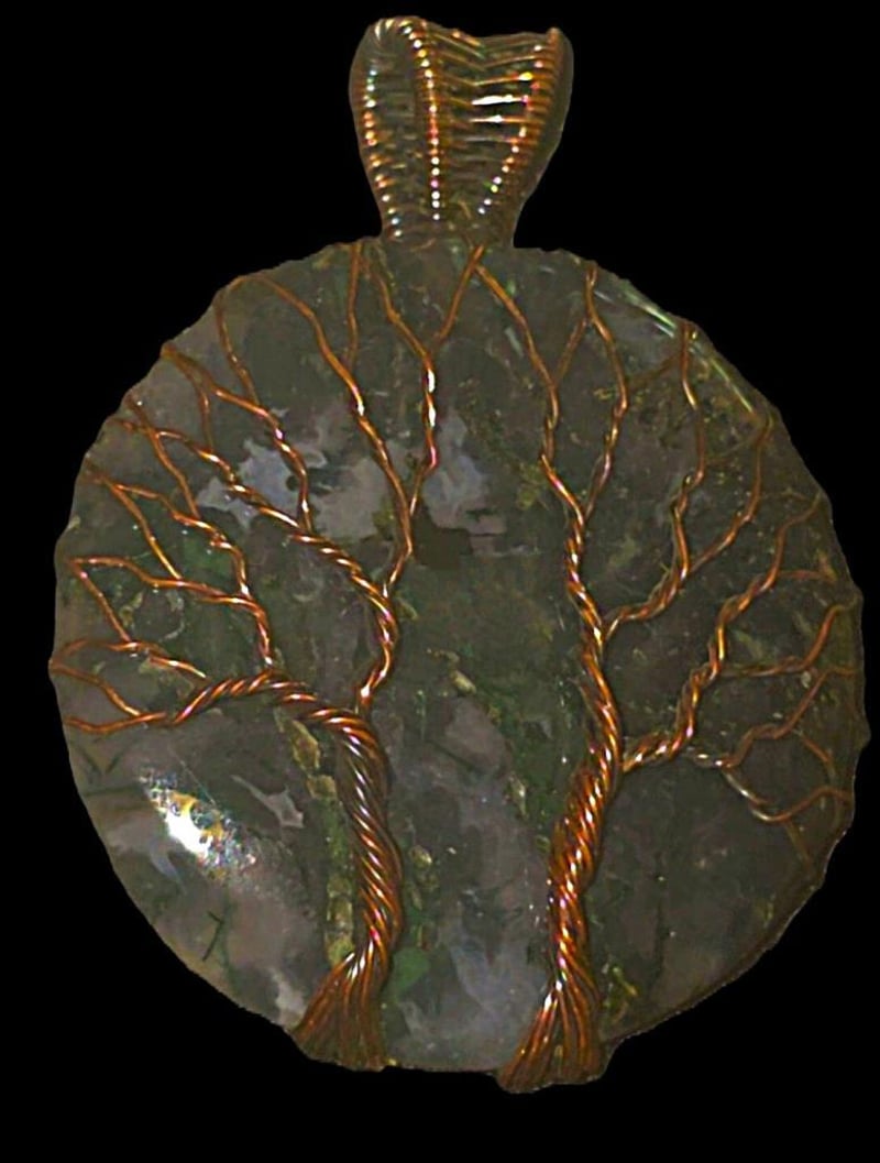 165 TCW WIRE WRAPPED GREENSTONE TREE OF LIFE PENDANT