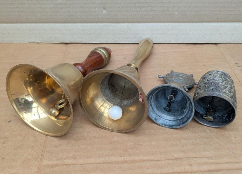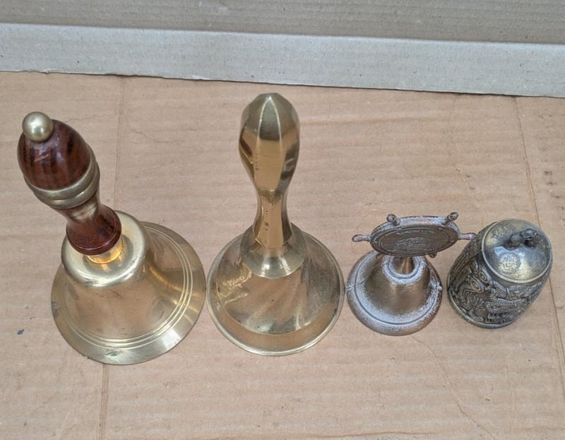 COLLECTION OF OLD BRASS BELLS WITH DONGLE
