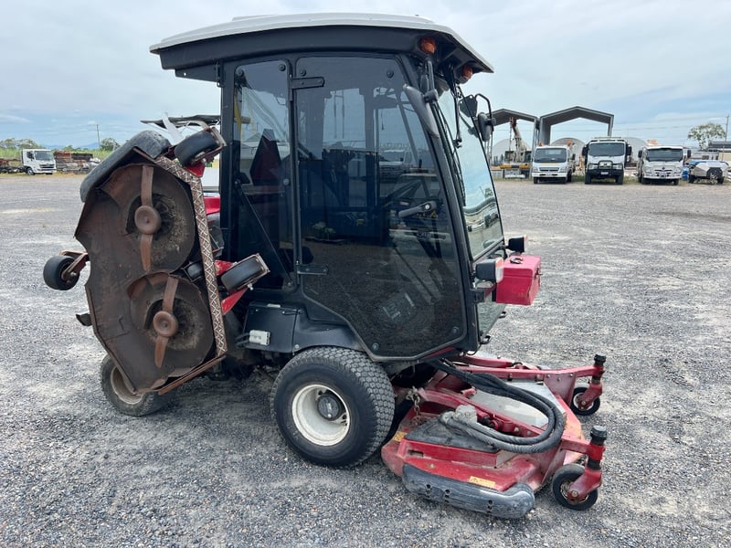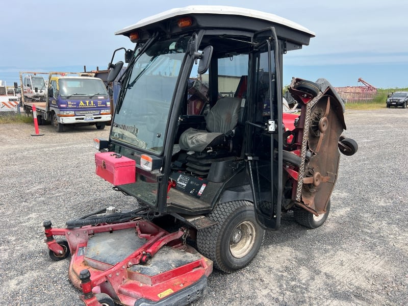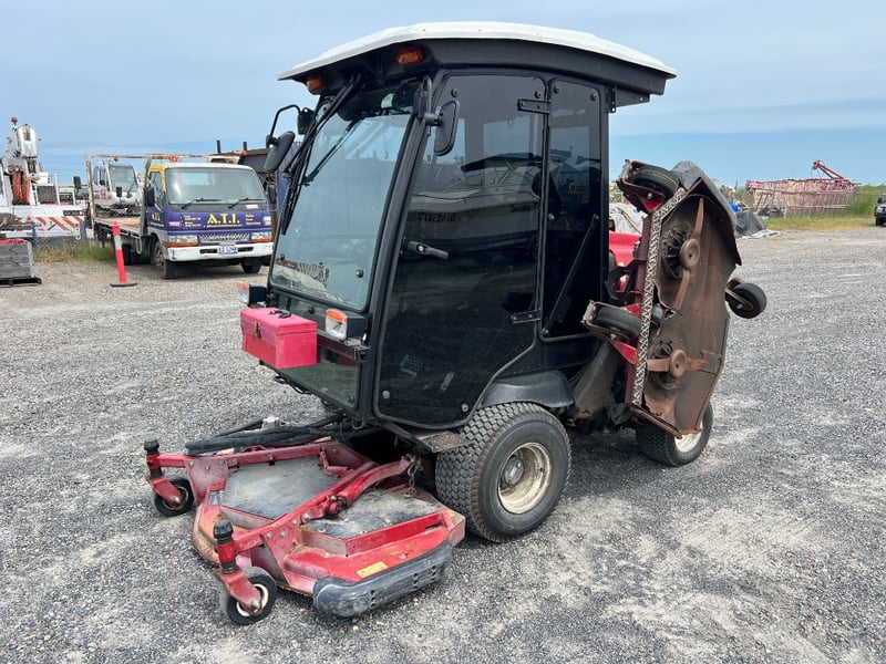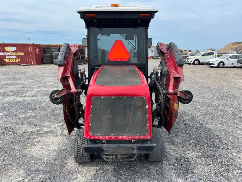 Features / Inclusions: Fully enclosed cab with glass, Power steering, Heavy-duty commercial chassis, Rear-mounted engine, Industrial turf tyres, Air Conditioning, Reverse Camera, Two Way Radio, Stereo System, Suspension Seat.