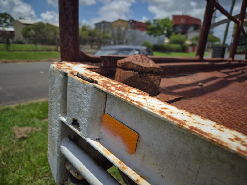 Condition: Used Condition, Surface rust visible throughout, Timber deck bearers are weathered.