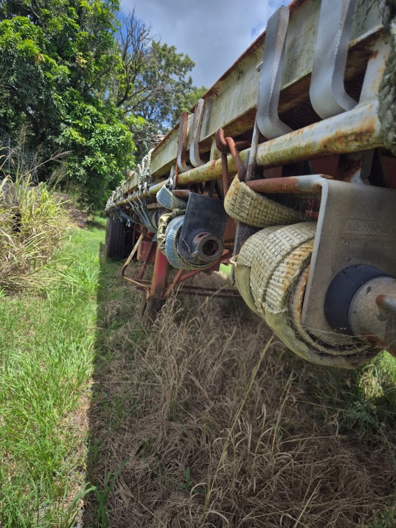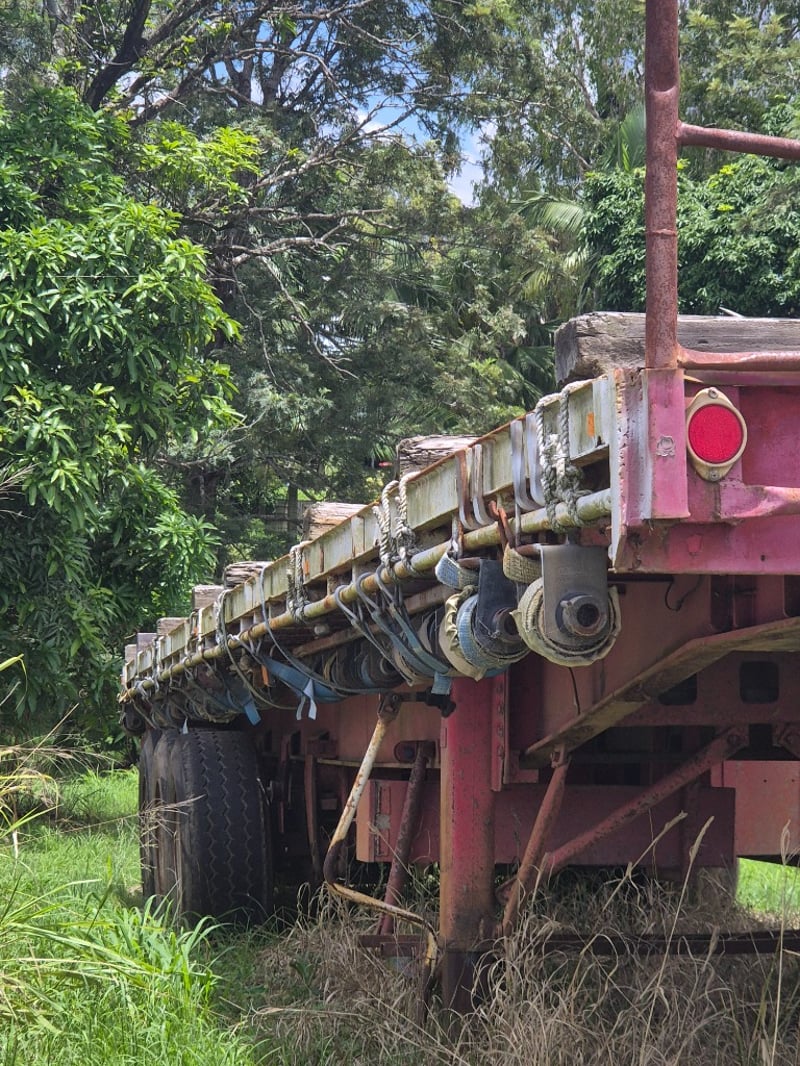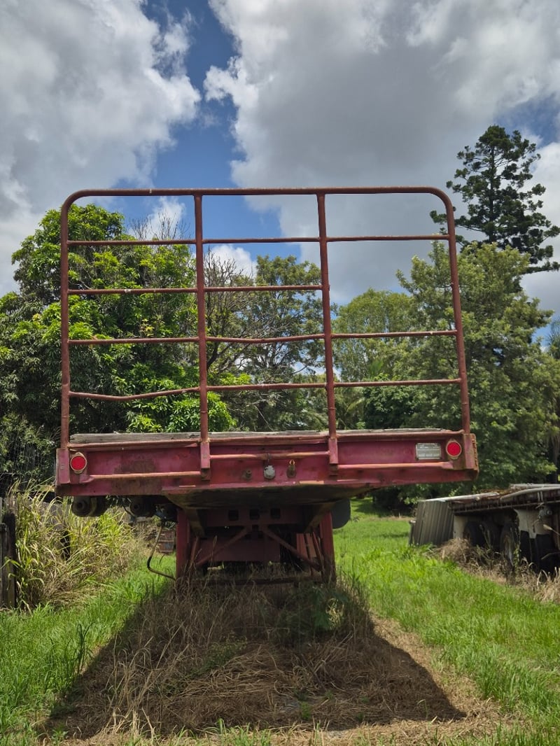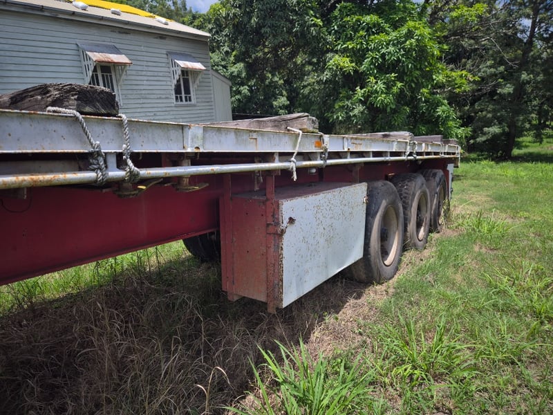Notes/Extras: Tri-Axle, Fixed Flat Deck, Steel deck with timber bearers, Front headboard fitted, Underbody toolbox fitted, Landling legs Fitted.