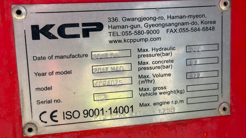 • Max Concrete Pressure: 82 bar