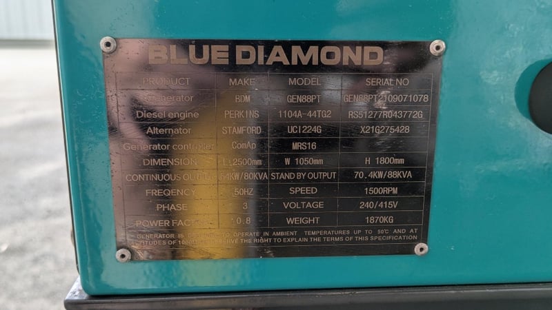2022 Blue Diamond Genset GEN88PT with Sound Deadener and Mining Specs