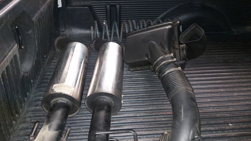 Exhaust system consists of 1 7/8” ceramic‑coated stainless headers feeding into a full twin 3‑inch stainless Mantra exhaust with additional stainless muffler extensions under the hard top.