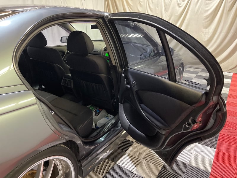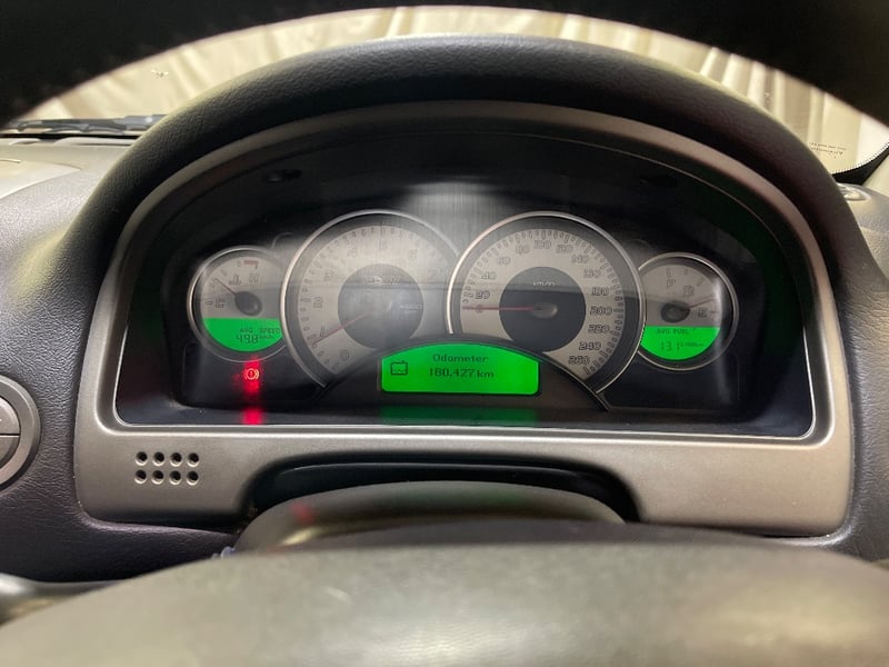 2003 HSV Commodore VY four‑door sedan finished in Grey. Rear‑wheel drive configuration powered by a 5.7‑litre V8 petrol engine paired with an automatic transmission. Odometer indicating 180,427 kilometres. Seating for five occupants.