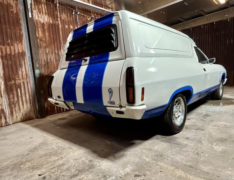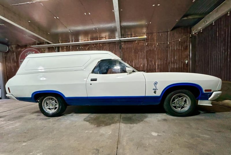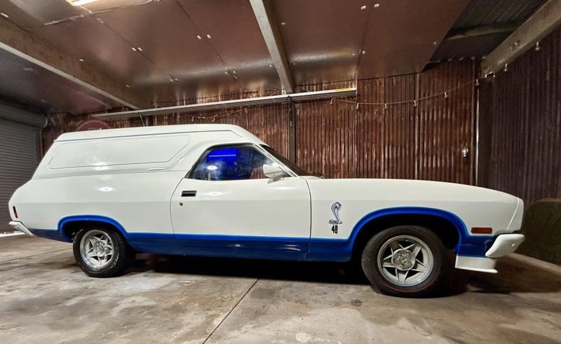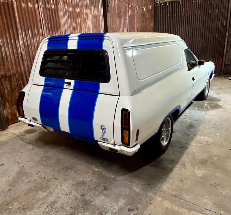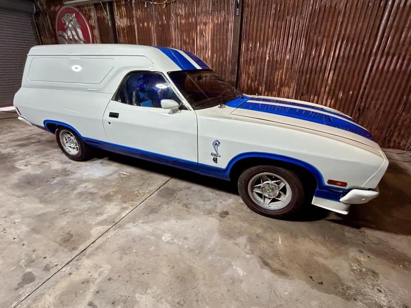 An iconic example of Australian panel van culture, this 1978 Ford XC Sundowner is a genuine V8 JG47 van, now beautifully restored and presented in a striking homage to the legendary Falcon Cobra livery. Originally finished in Platinum Blue with Saddle trim, it has been comprehensively rebuilt to a high standard, blending period-correct style with classic V8 character.