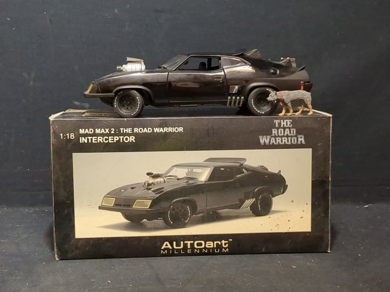 AUTO ART MILLENNIUM MAD MAX 2 THE ROAD WARRIOR INTERCEPTOR SCALE 1:18 MODEL CARComes with accessories such as dog, spare tyre, Jerry cans. And dog food