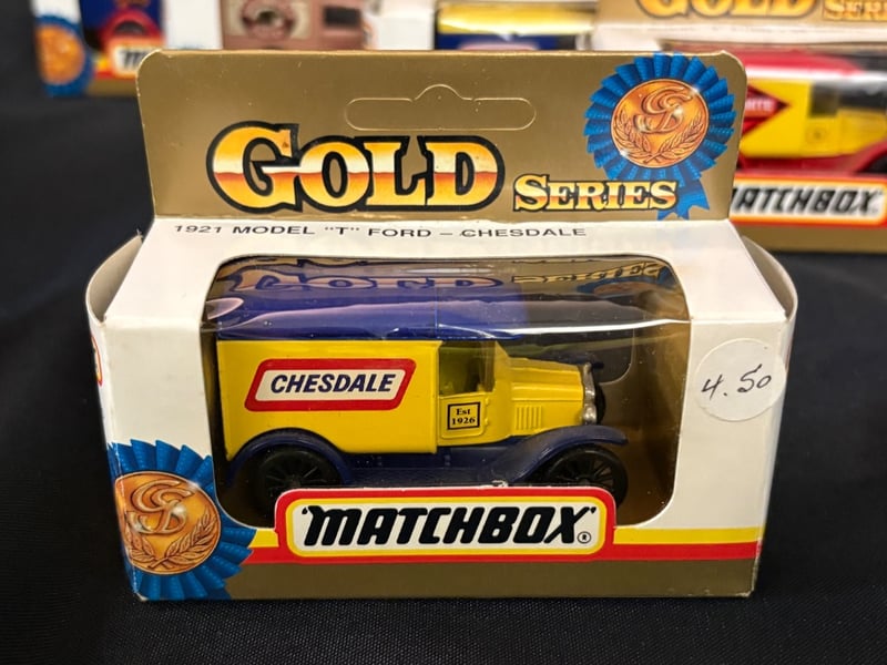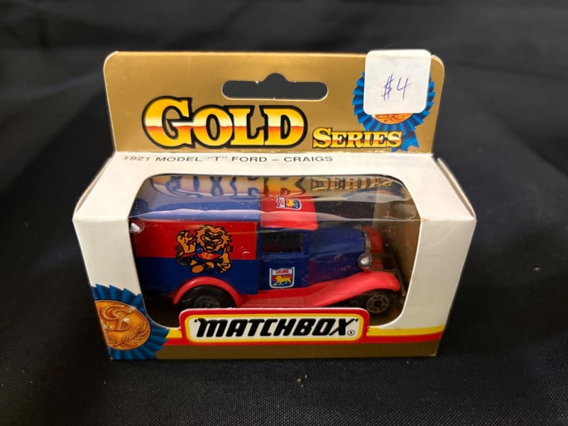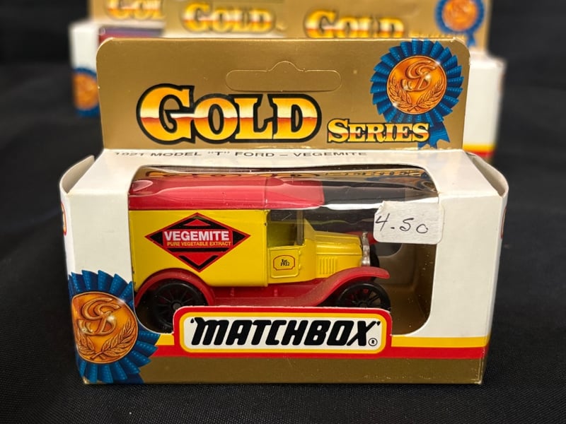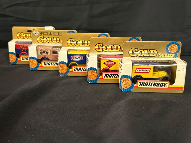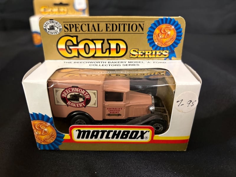 1993 Matchbox Gold Series Diecast CarsIncludes:1921 Model T Ford Craigs1921 Model T Ford Vegemite1921 Model T Ford Chesdale1921 Model T Ford KraftBeechworth Bakery Model A Ford Collectors Series Special Edition