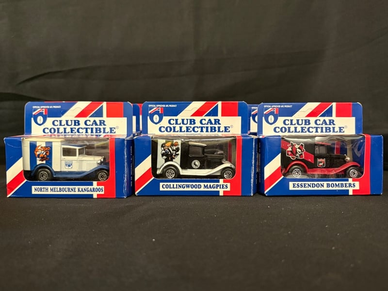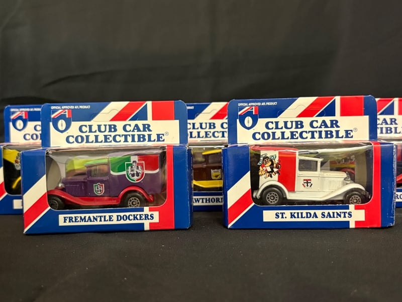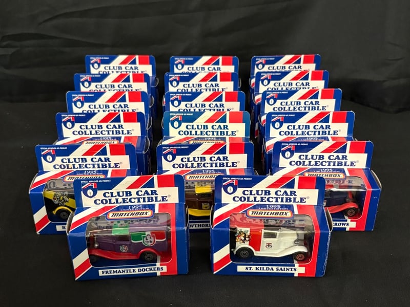 Collection of 17 1995 Limited Edition Matchbox Diecast Cars Club Car Collectible ConditionIncludes:Fitzroy LionsGeelong CatsMelbourne DemonsSydney SwansCarlton BluesFootscray BulldogsNorth Melbourne KangaroosCollingwood MagpiesEssendon BombersBrisbane BearsWest Coast EaglesRichmond TigersHawthorn HawksAdelaide CrowsSt Kilda Saints2 x Fremantle Dockers