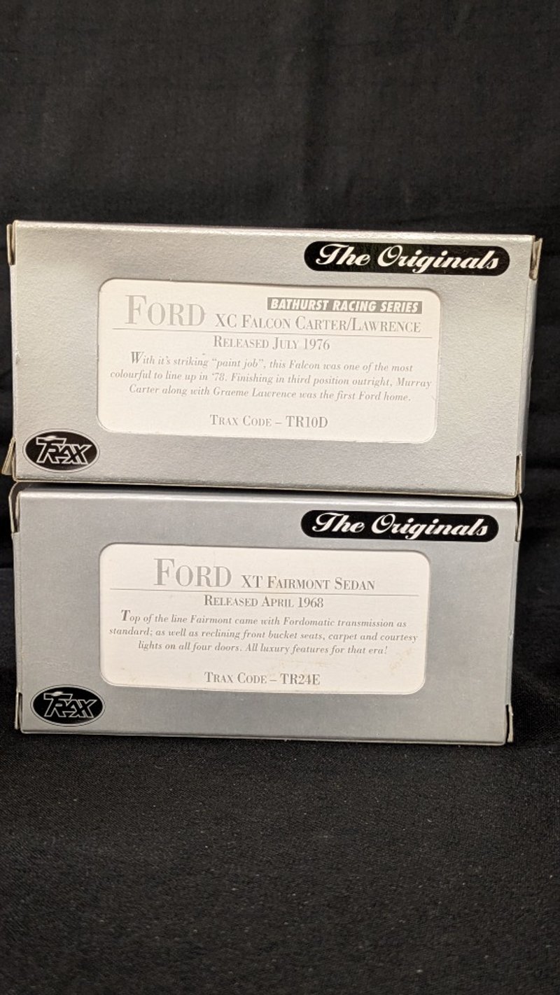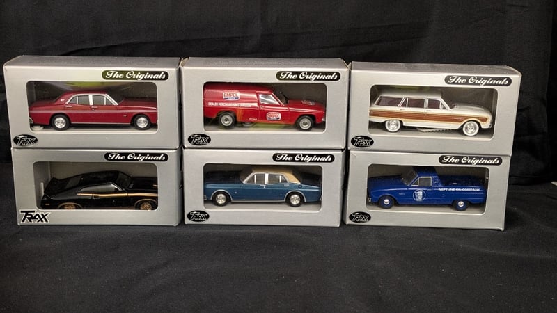 TRAX Ford Collectable Die Cast CarsFord Falcon XT GTFord Falcon XC Hardtop Bathurst Special EditionFord XC Falcon Cutter Lawrence Bathurst Racing SeriesFord XT Fairmont SedanFord XL Falcon SquireFord XK Falcon Utility Aussie Oil Series