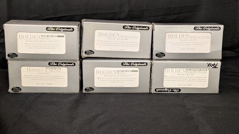 TRAX The Originals Die Cast Model CarsHolden FB Sedan Aussie Taxi SeriesHolden 50-2106 Utility Aussie Oil SeriesHolden FB Special SedanHolden FB Sedan Aussie Taxi SeriesHolden HQHolden Anniversary Edition