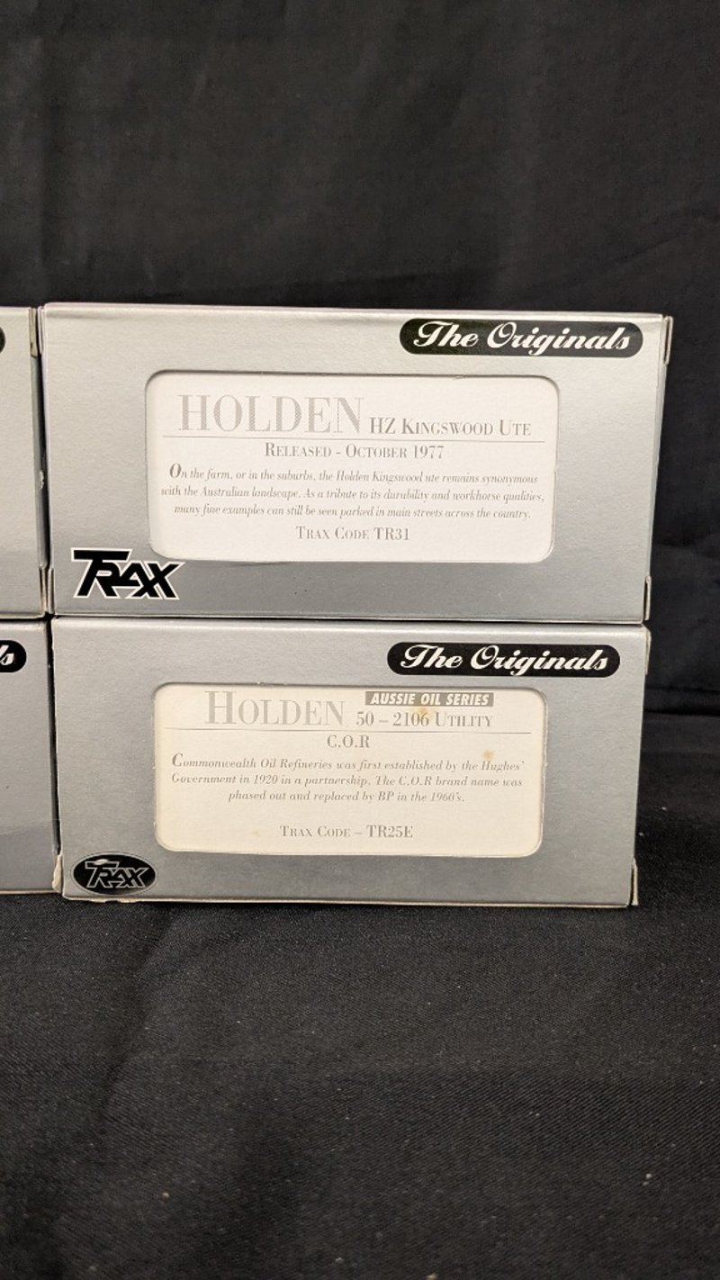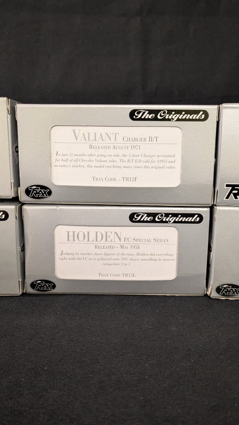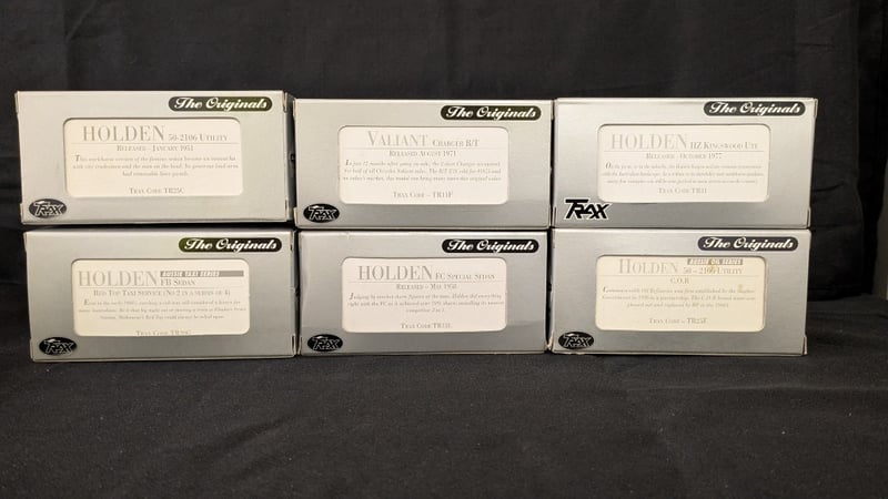 TRAX The Originals Die Cast Model CarsHolden 50-2106 UtilityValiant Charger R/THolden HZ Kingswood UteHolden 50-2106 Utility Aussie Oil SeriesHolden FC Special SedanHolden FB Sedan Aussie Taxi Series