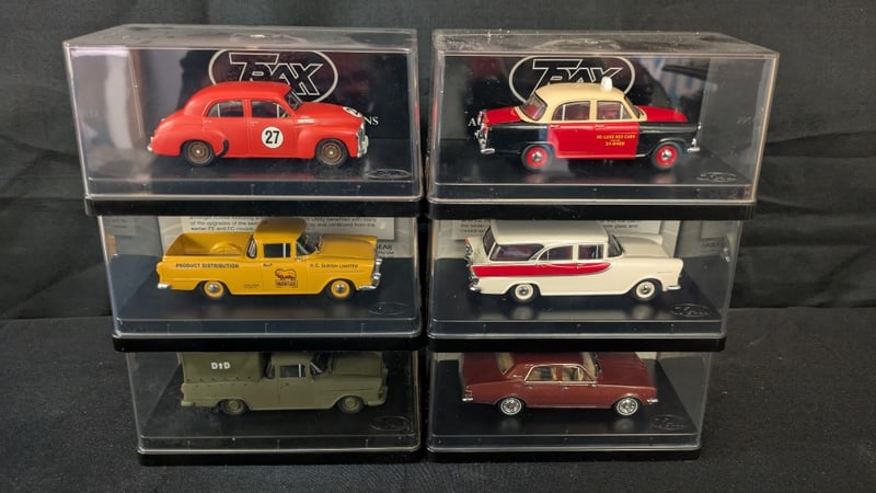 Trax Die Cast Model Cars Holden HG Premier Sedan Holden FB Special Station Sedan Holden FB Utility Australian Army Holden FE Business Sedan Holden 48/215 Sedan Holden FB Utility Aussie Oil Series