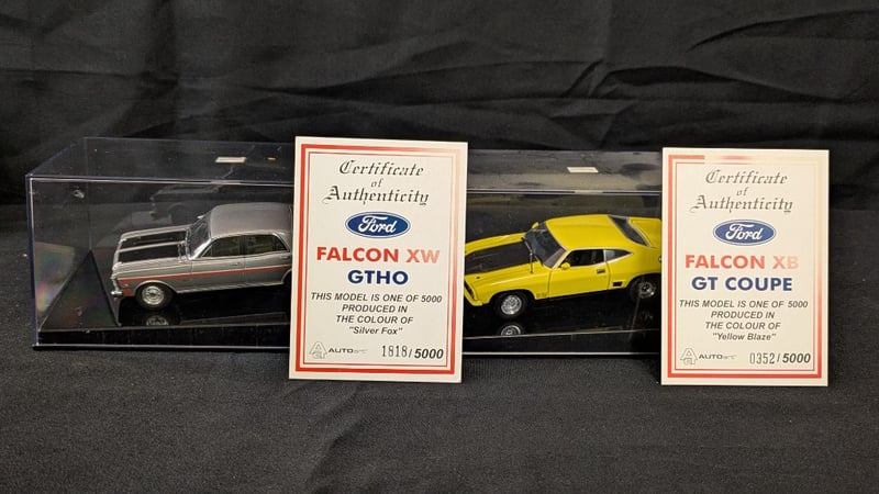 Auto Art - Ford Falcon XW GTHO in Silver Fox #1818/5000 and Ford Falcon XB GT Coupe in Yellow Blaze #352/5000