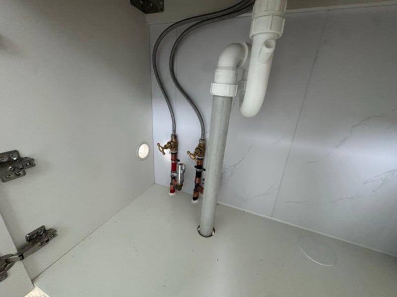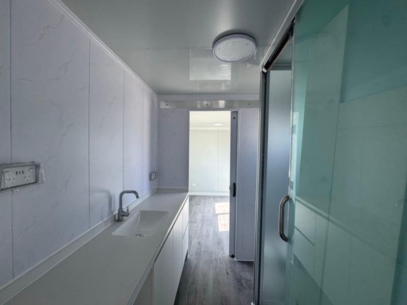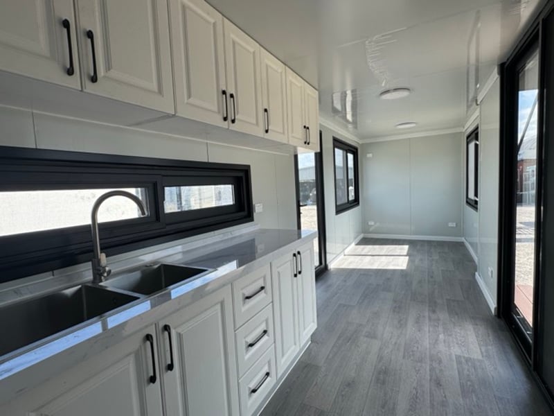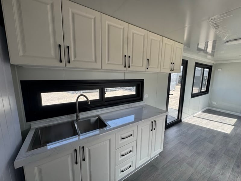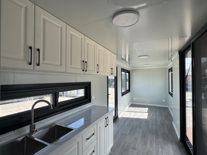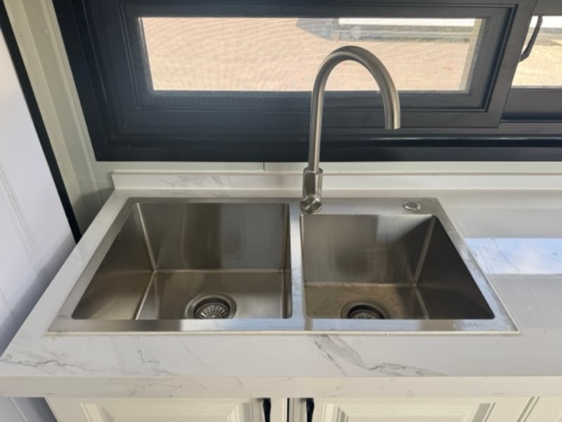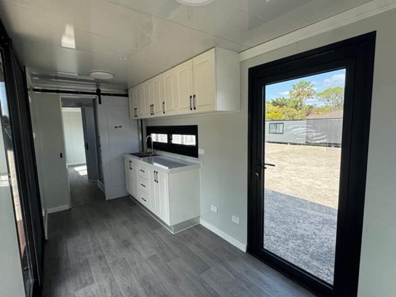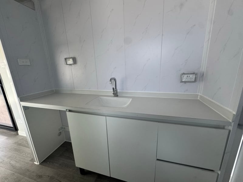 - Complete with kitchen double bowl sink, bench top, pvc vinyl flooring, light