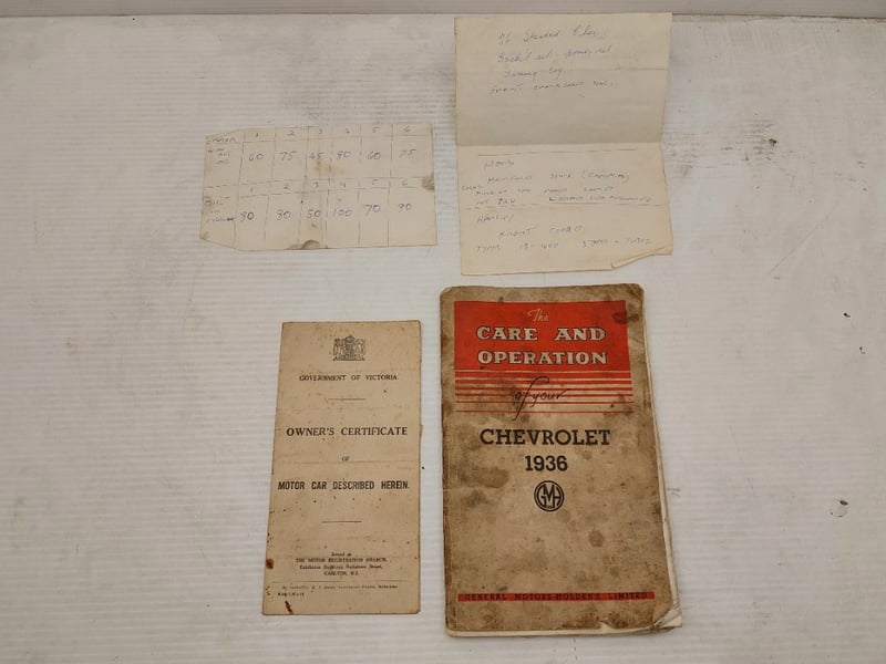 Built by GMH factory and originally sold by Willys Motors in Victoria. Includes owner’s manual and fire extinguisher. A highly unusual survivor from the pre-war era, offering strong appeal to collectors of early Australian commercial vehicles and Chevrolet enthusiasts alike.