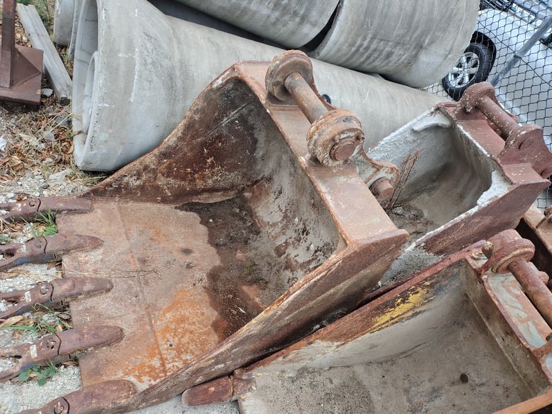 1800 mud bucket, 900 rock bucket, 600 GP bucket,
