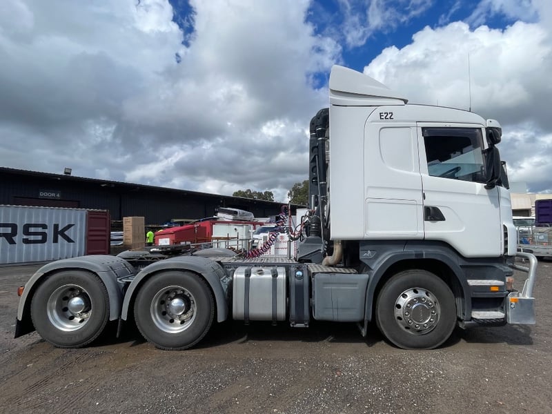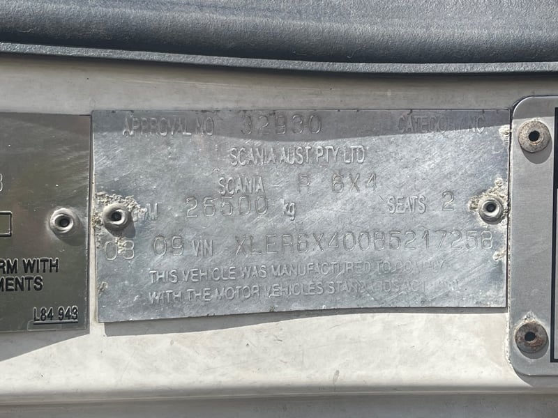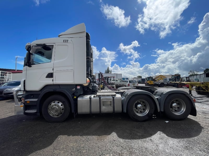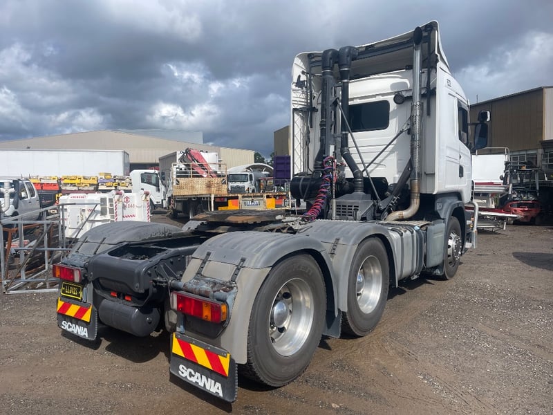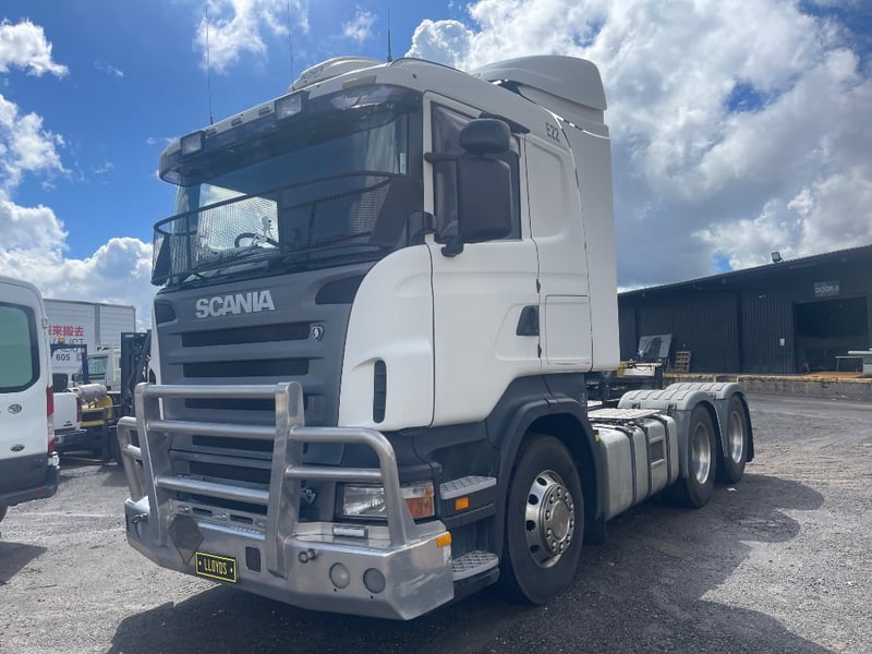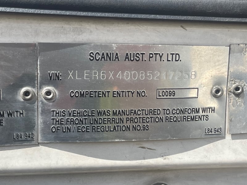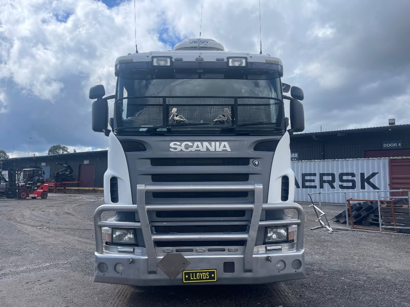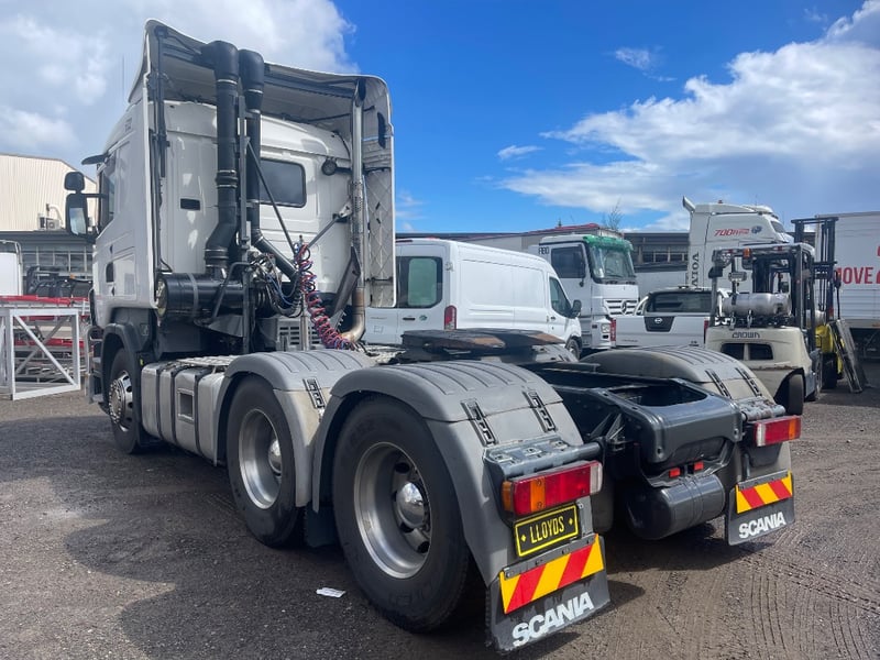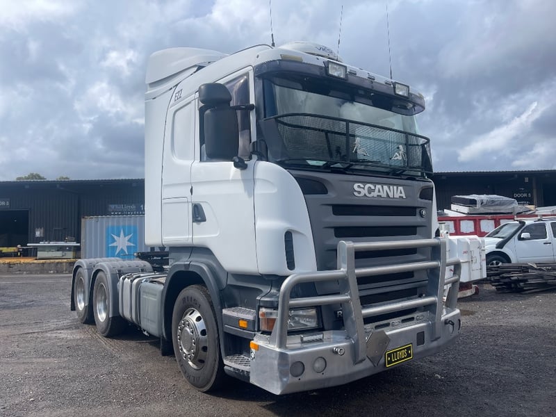 2008 Scania SCANIA Year: 2008 Make: Scania Model: SCANIA Body: 2-Door Prime Mover Drive Type: Rear wheel drive Odometer: Indicating 1,011,989 Kilometers Engine: 1.6 V8 Turbo Diesel Transmission: Automatic Colour: White Seats: 2 Description/extras: -Mid-Life @800,00 oil cooler, -Compressor - Air dryer, -Turbo -Valley Re-sealed -New discs & braises. -95% tyres, rood cool. Note: Unable to tilt cab, need tools. VIN: XLER6X40085217258 ENG No: 1068787 Sold unregistered (Key #CTM21 Marple) Lloyds stock #580619+1
