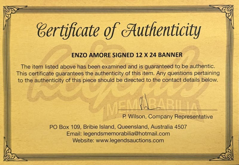 Enzo Amore Personally Signed 12 X 24 Banner. Eric Arndt Is An American Professional Wrestler. Most Known For His Tenure In Wwe Under The Ring Name Enzo Amore. The Item Is Accompanied By A Certificate Of Authenticity.