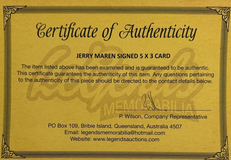 Jerry Maren Personally Signed 5 X 3 Index Card. Comes With A 10 X 8 "Munchkins" Photo. Jerry Maren Was An American Actor Who Played A Munchkin Member Of The Lollipop Guild In The 1939 Metro-Goldwyn-Mayer Film The Wizard Of Oz. The Item Is Accompanied By A Certificate Of Authenticity.