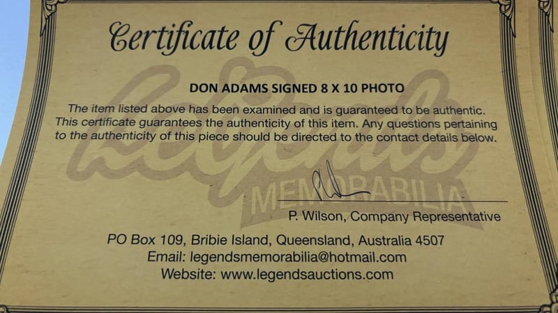 DON ADAMS SIGNED 'GET SMART'Don Adams (D 2005) Personally Signed 8 X 10 Photo.The Item Is Accompanied By A Certificate Of Authenticity.Size: cm x cmCondition: Good - Refer To Images585460+33