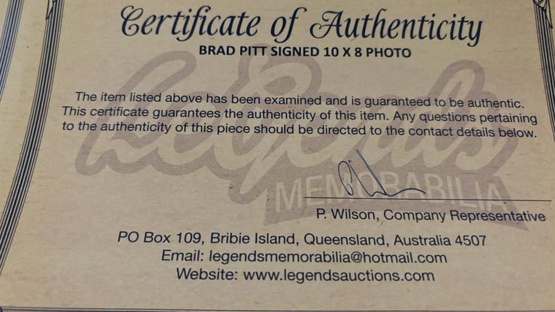 BRAD PITT SIGNED 'OCEANS 11'Brad Pitt Personally Signed 8 X 10 Photo.The Item Is Accompanied By A Certificate Of Authenticity.Size: cm x cmCondition: Good - Refer To Images585460+35
