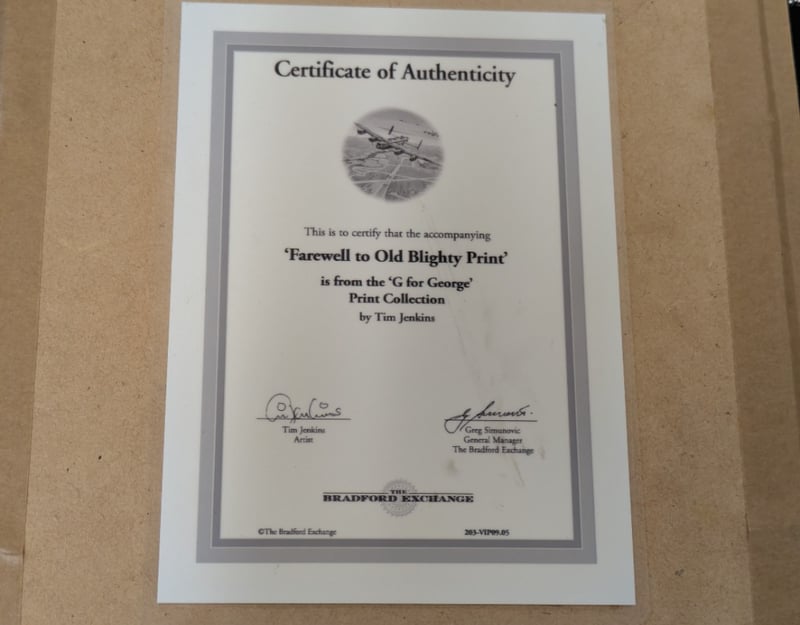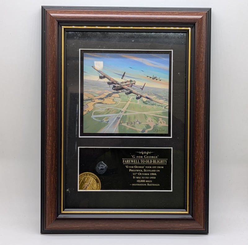 "Farewell to Old Blighty Print" of the G for George Print Collection from Artist Tim Jenkins. Note: Coin has come loose.