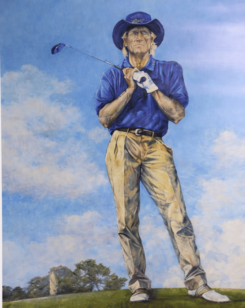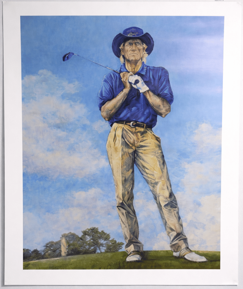 LIMITED EDITION PRINT BY PENNIE DOWIE TITLED 'GREG NORMAN, THE GREAT WHITE SHARK'