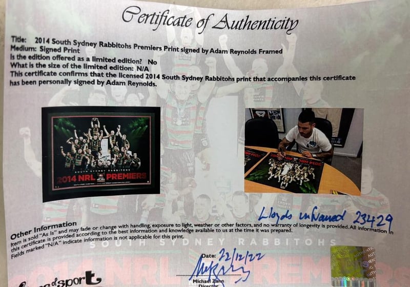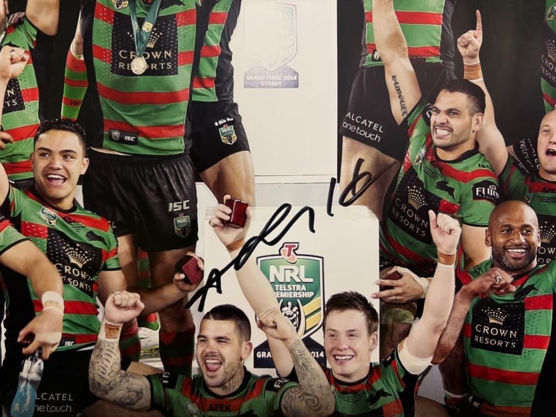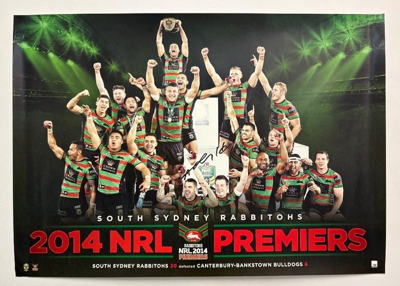 2014 SOUTH SYDNEY RABBITOHS NRL PREMIERS SIGNED PRINT - ADAM REYNOLDS AUTOGRAPH WITH CERTIFICATE OF AUTHENTICITYCondition: Fair - Refer To ImagesSR233094+8