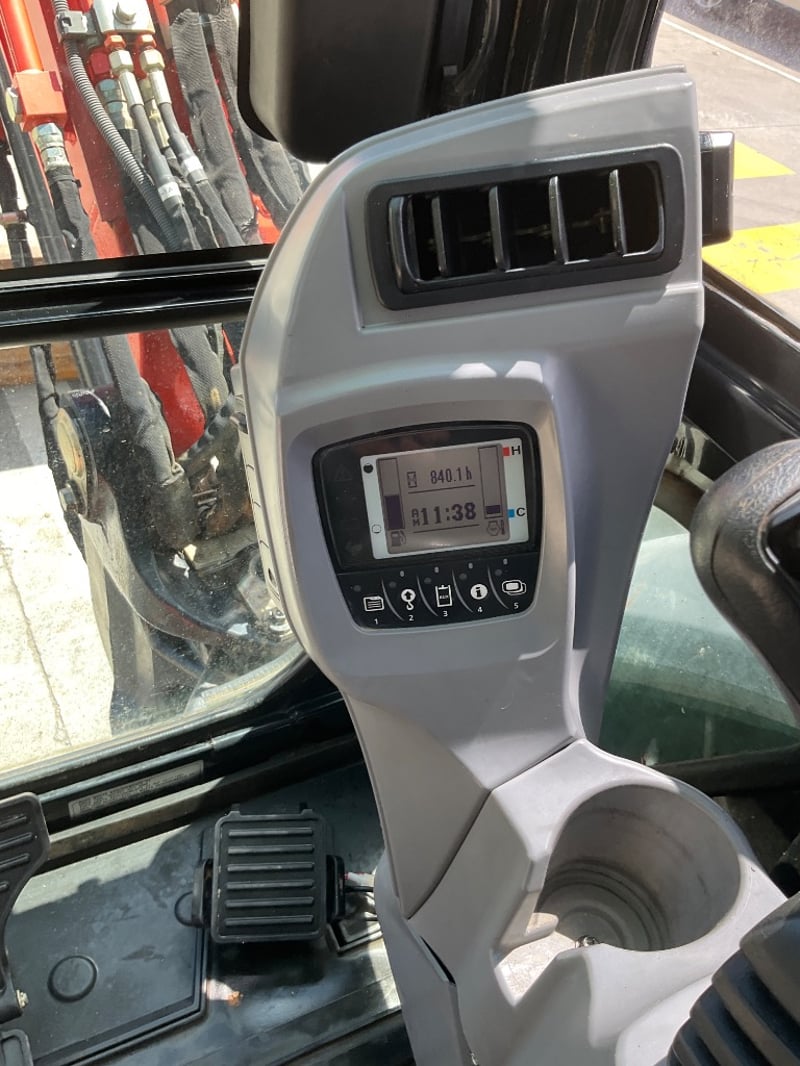 Description: in good working condition, 4 cyclinder diesel engine, rubber tracks, air con cab, digital display, mp3 player with blu tooth, 1.2m wide mud bucket, quick hitch