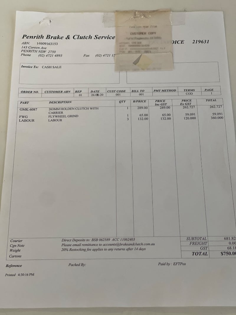 ** This vendor is not registered for GST - therefore GST is not applicable on this asset **