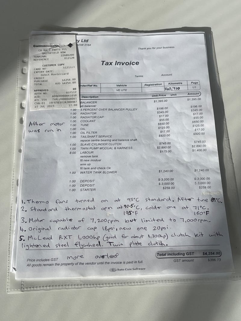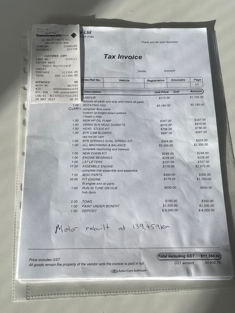 The drivetrain has also received significant upgrades including a new Tremec TR6060 6‑speed manual transmission, heavy‑duty twin‑plate clutch and upgraded differential. The vendor advises they have owned the vehicle since 2010 (approximately 32,000 km) and retain invoices for the work completed. Inspection is recommended to verify modifications and overall condition.