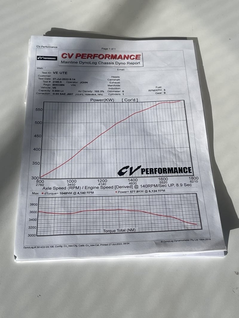 A highly modified performance example of the Holden VE SS Utility, extensively upgraded with a built 6.6‑litre L98 stroker engine and Harrop supercharger package. The engine was professionally built by CV Performance and has travelled approximately 4,580 kilometres since completion. The vehicle is reported to produce approximately 577kW (774hp) and 1,048Nm at the rear wheels.