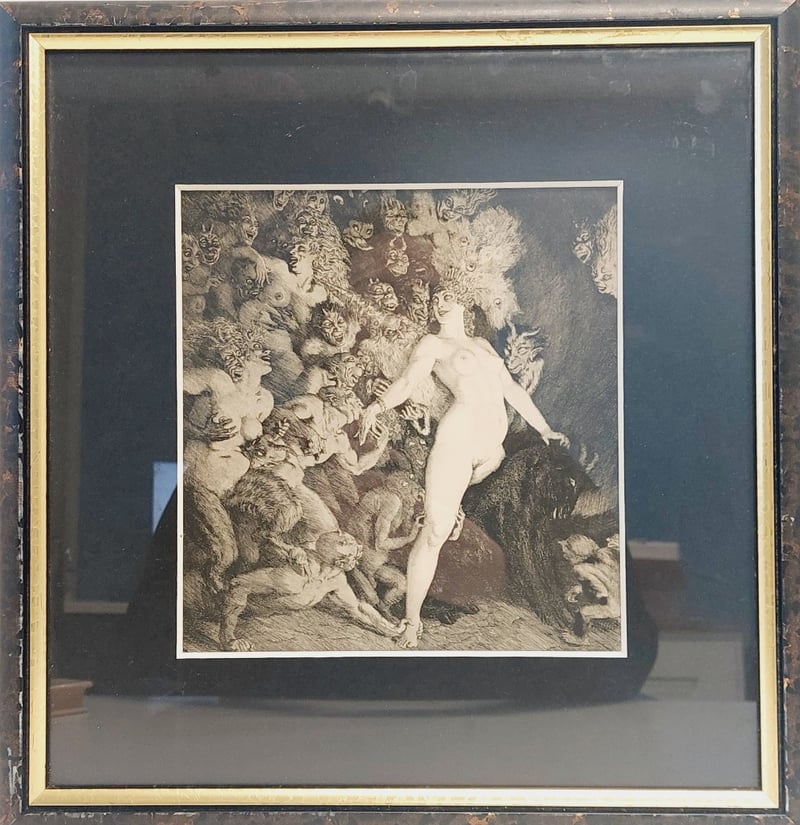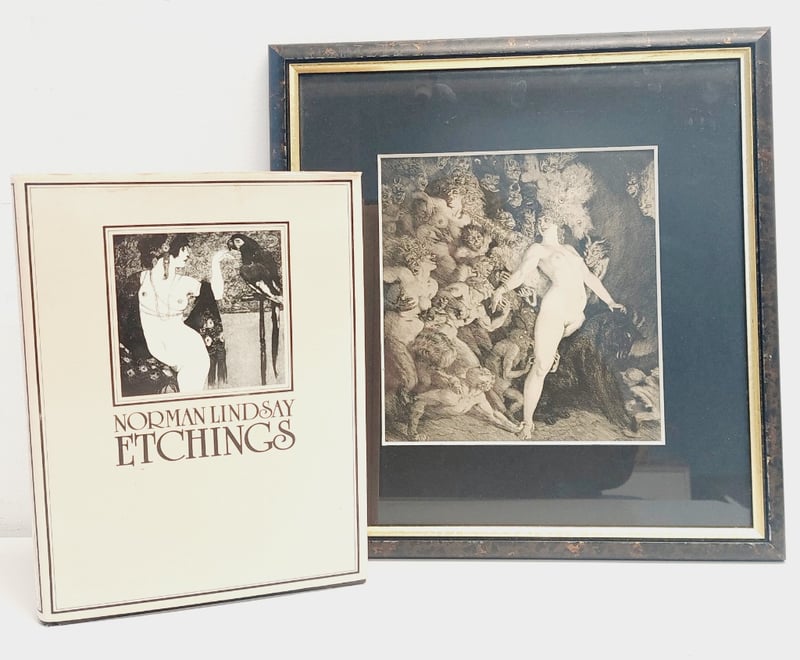 NORMAN LINDSAY ETCHINGS BOOK INCLUDES NORMAL LINDSAY FRAMED PRINT