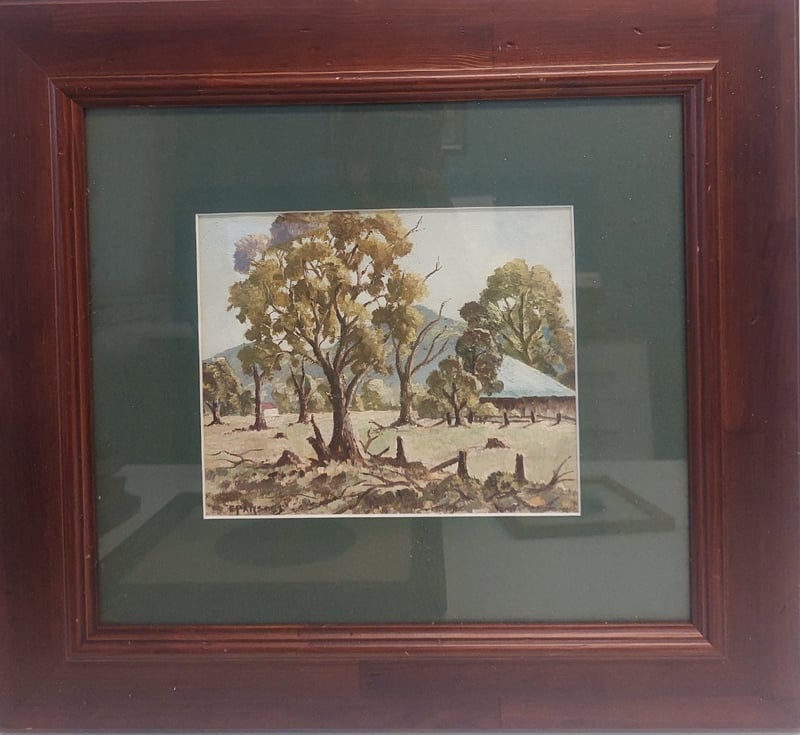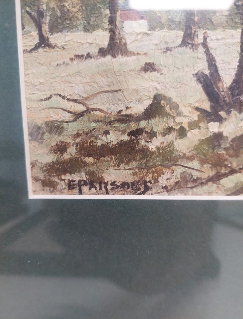 A FRAMED OIL PAINTING OF A RURAL AUSTRALIAN LANDSCAPE BY E. PARSONS.