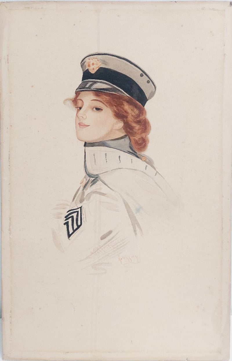 ARTWORK IS TITLED "MAID AT ARMS BY ARTIST HARRISON FISHER.