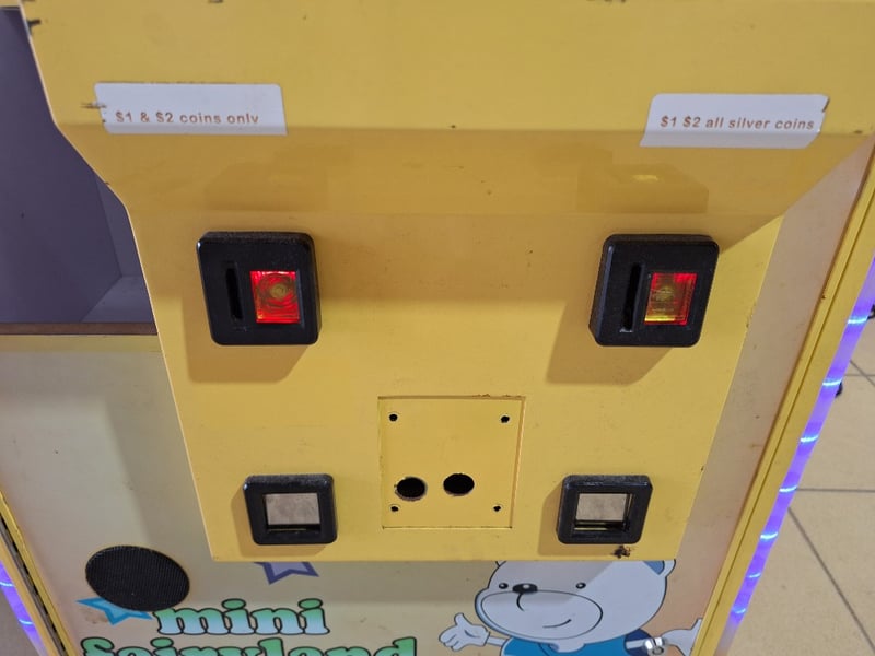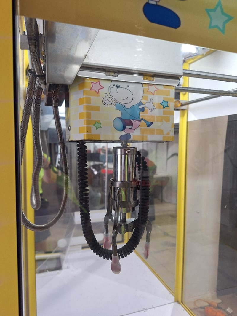 Claw Machine, Coin Mechanism, Yellow Finish, No Keys Or Power Cord, Uses IEC Power Cable Or Similar