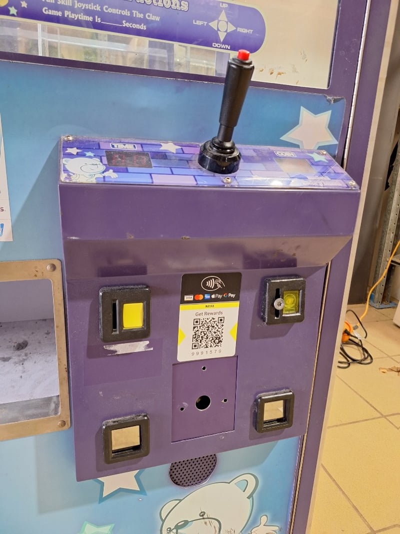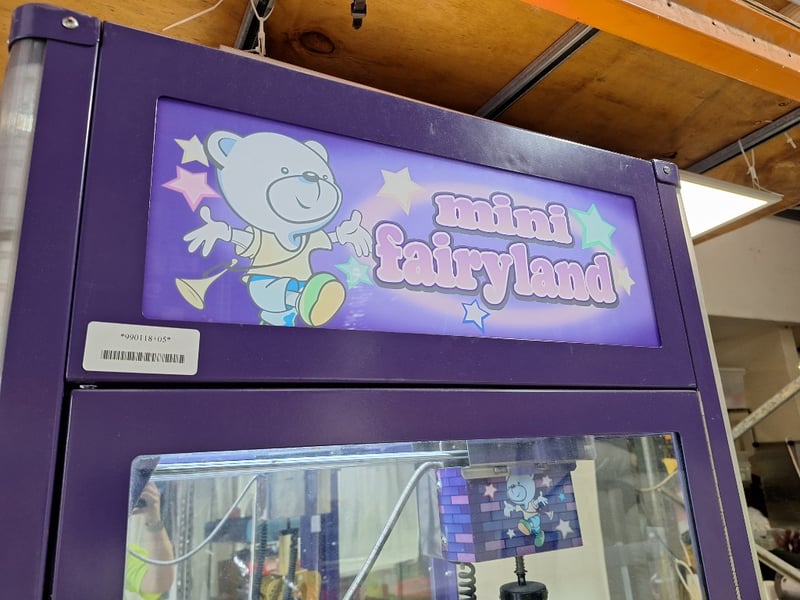 Acarde Machine - Mini Fairy LandDimensions H:192cm W:64cm D:64cmClaw Machine, Purple Finish, Coin Mechanism, Non-Working/Needs Work, No Keys Or Power Cord, IEC Power Cable Or Similar