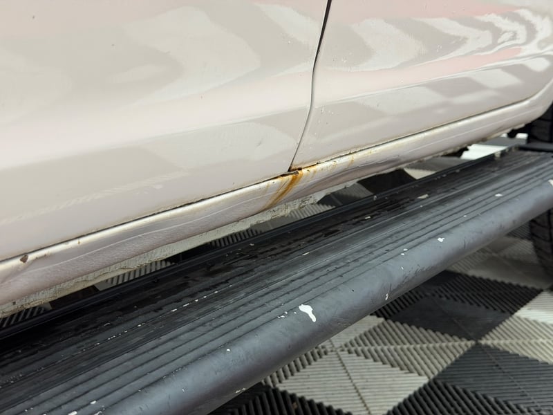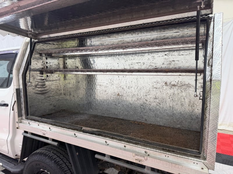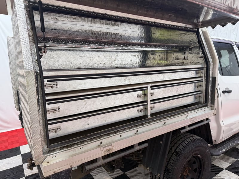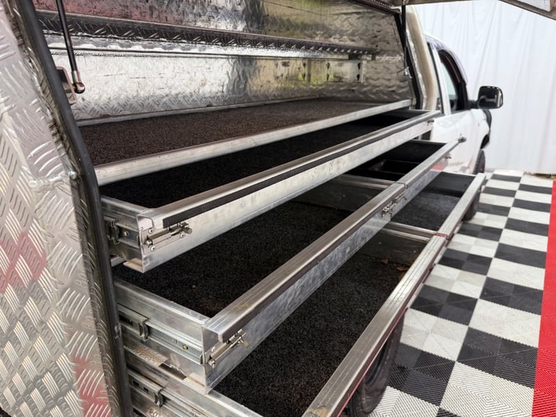 Custom fit toolboxes and storage on tray. Side steps, weather shields Scratches and minor dents. Slight damage to lower rear drivers side door, surface rust, driver mirror missing cover, small dent in bonnet, paint peel and fade on side steps, Wear & tear commensurate with age. Inspection recommended.