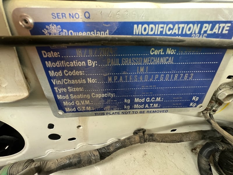 Description/Extras: Iron Man Suspension and Bull-Bar, Tow Bar, Fully Mine Mine Spec, Two-Way Radio, Kings Spot Lights and Seat Covers, Red-Ark Brake System, Tool Box, Flashing Light, Service Records, 2 Keys