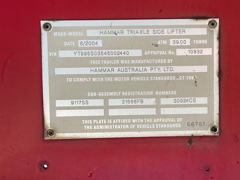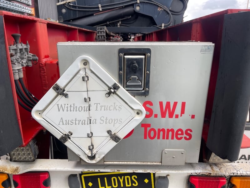 10 Stud aluminium rims, Air bad, lift axle, disc brakes, BPW axles, toolbox, water tank, timber rack mechanical weight gauge, X2 Fire extinguishers for DG, Cordless remote, tyres 80%