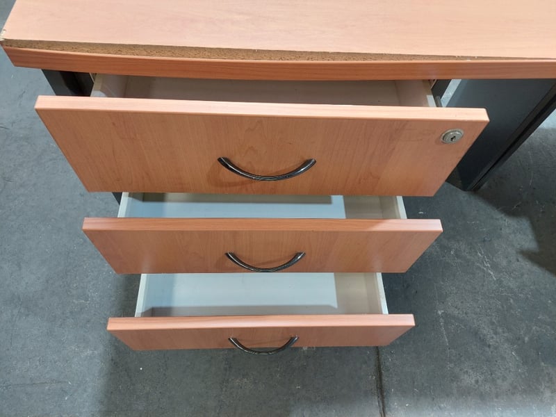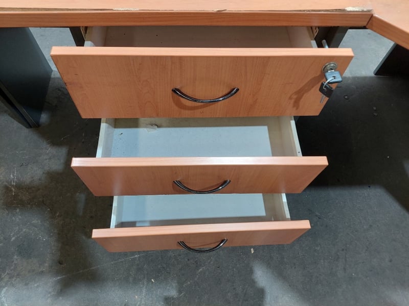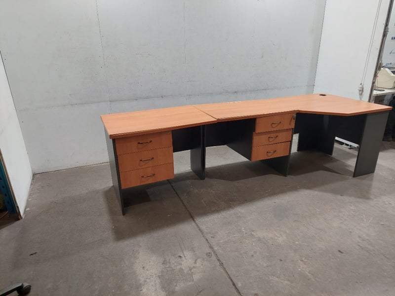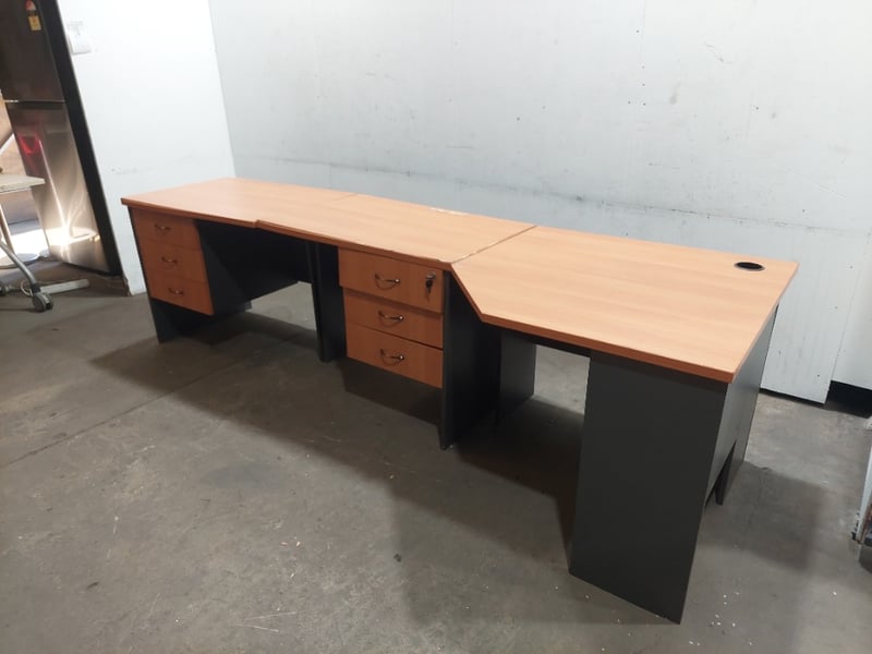 3 piece table modular work station.Dimensions: 73cm H, 171cn W, 90cm D.Sold as lot.Notes: signs of wear.